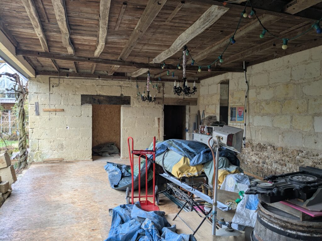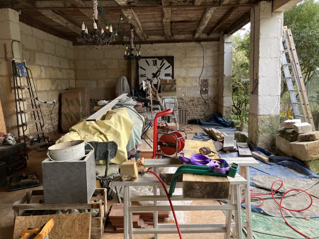 Le Théâtre des Volubiles est officiellement entré dans sa phase “grands travaux”. Casques imaginaires vissés sur la tête, bottes bien ancrées dans la boue (oui, vraiment), nous transformons peu à peu la grange en un véritable cocon de spectacle.